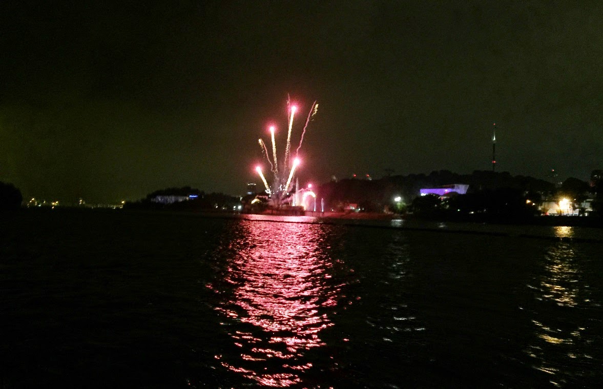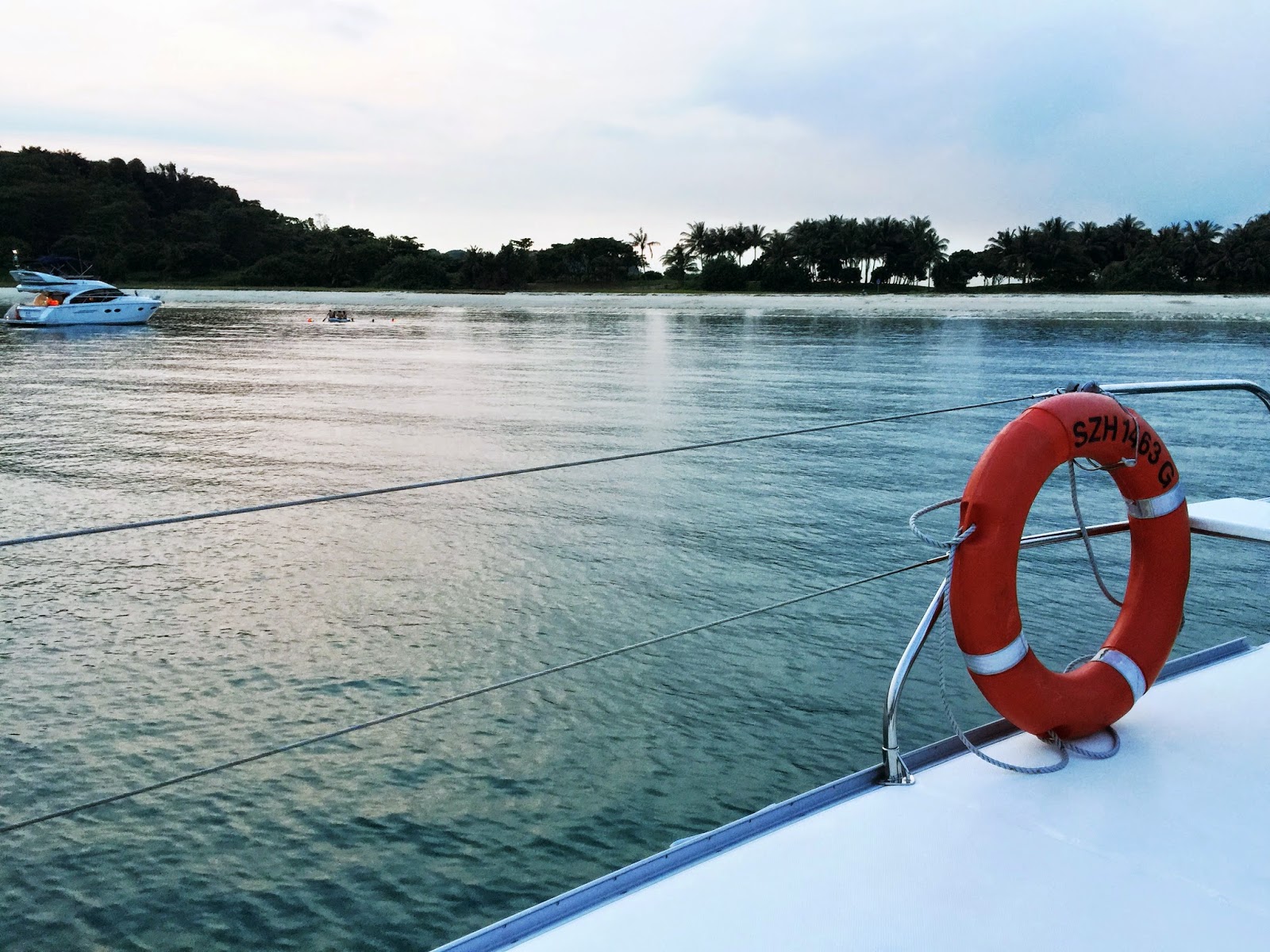 The sky gotten dark came really fast, we managed to see a bit of fire work from Sentosa. After which, we sailed back to Sentosa Cove.